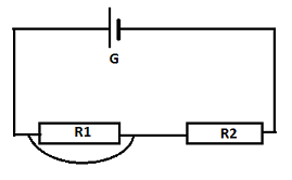 On réalise un circuit en série comprenant un générateur de tension constante U = 6 V et deux résistors de résistances respectives R1 et R2.