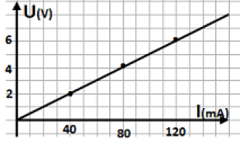 Pour déterminer expérimentalement la résistance d’un résistor, un élève de 3ème trace la courbe caractéristique U = f(I) donnée ci-contre.