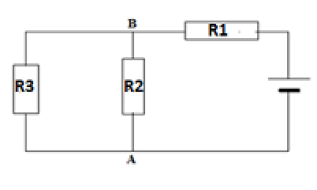 Un résistor de résistances R1 = 16 Ω est branché en dérivation avec un autre résistor de résistance R2= 12 Ω entre deux points A et B d’un circuit électrique. Le courant qui traverse le résistor de résistance R1 a pour intensité I1 = 3 A.