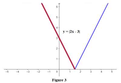 Les deux demi-droites (rouge et bleue) forment la représentation graphique de l'application \(f\) définie par : \(k\left( x\right) =\left| 2x-3\right|\).