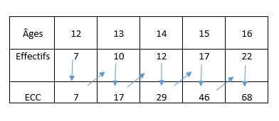 Voici une méthode de remplissage du tableau des effectifs cumulés.