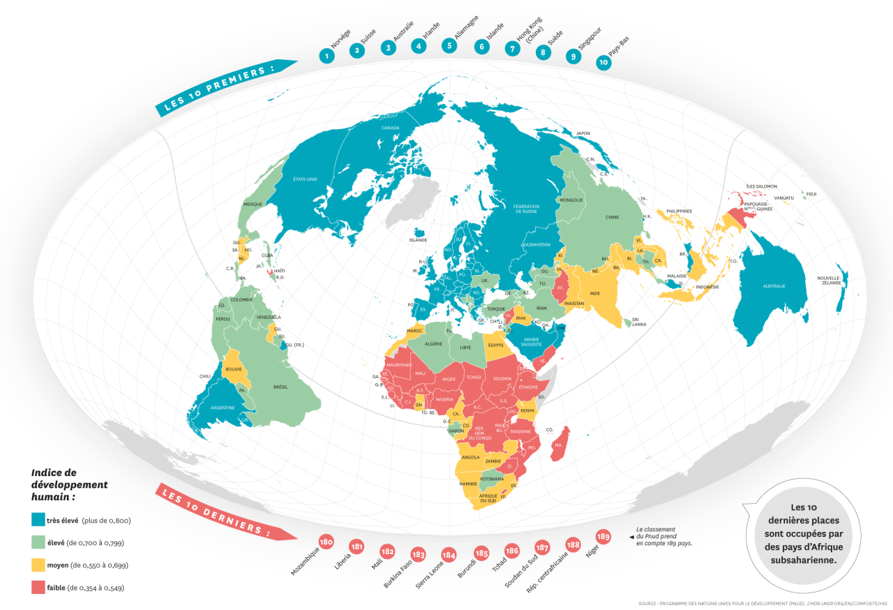A travers le monde, on note de profondes inégalités de développement. qui peuvent se lire à différentes échelles géographiques : depuis les grands ensembles du monde jusqu’aux territoires.