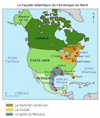 · Une zone de cyclones : en effet, à la fin de l'été et au début de l'automne des masses d'air chaud et humide en provenance du monde intertropical sont à l'origine de cyclones tropicaux qui ravagent les côtes du Golfe du Mexique et la Floride entraînant bien souvent des dégâts humains et matériels considérables