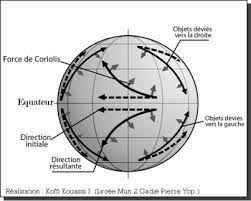 Du fait de la rotation de la terre, tous les mobiles (vents, courants marins) à la surface du globe sont déviés sous l’impulsion de la force de Coriolis. Cette déviation s’exerce à la droite du mouvement dans l’hémisphère Nord et à la gauche du mouvement dans l’hémisphère Sud.
