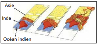 La collision est marquée la formation de chaines de montagnes lors de la rencontre des deux plaques continentales.