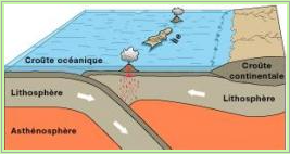 • La divergence des plaques : deux plaques s'éloignent l'une de l'autre. Ce phénomène permet l’expansion des fonds océaniques.
