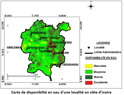 1. Ngoloblasso et Seguilon sont deux zones dont les conditions hydrologiques sont excellentes. La carte montre que ces deux localités présentent une très grande disponibilité en eaux souterraines.