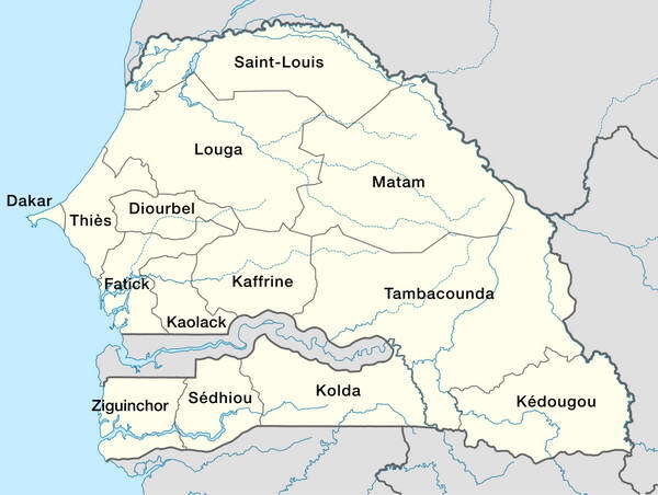 Carte de régions du Sénégal.