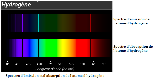 L'émission ou l'absorption de lumière par l'atome se fait de manière discontinue. Chaque atome ou molécule émet ou absorbe des radiations bien déterminées. Ainsi le spectre d'émission ou d'absorption caractérise l'atome ou la molécule et d'une manière générale la matière.