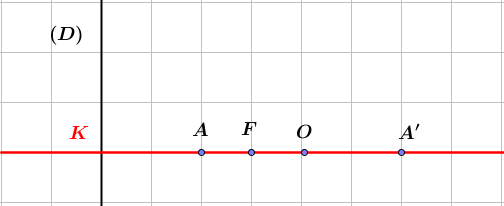 D’où l’on déduit que : \(\vec{OF}=𝑒 \vec{OA}\) et \(\vec{OK}=\frac1e\vec{OA}\) ⟹ \(𝑂𝐹 = 𝑒𝑂𝐴\), c’est-à-dire