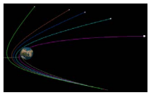 La masse m possède une vitesse non nulle à une très grande distance de la masse M et elle sera déviée lorsqu’elle passera près de la masse M attractive. L’objet n’est pas en orbite.