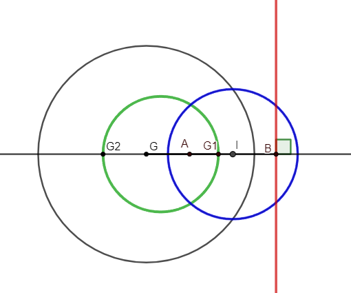 c) \(\frac{1}{2}≠ 1\), donc l’ensemble des points \(M\) tel que \(\frac{MA}{MB}=\frac{1}{2}\) est le cercle de diamètre \([G_1G_2]\)] où